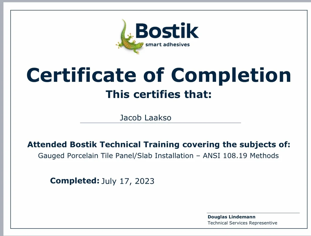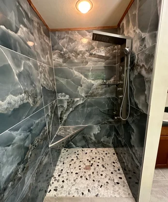 When it comes to breathtaking custom tiling, North Woods Carpentry excels. We are fully certified installers with additional Hydro-Blok certification!